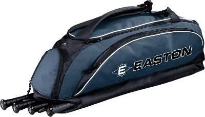 Easton championship tote bag is built from 600 Denier ballistic nylon embossed PVC with a rubberized PVC base. Holds up to four bats with large shoe pocket and three storage pockets. Adjustable padded shoulder strap and metal hanging fence clips. Clear window for personalization.