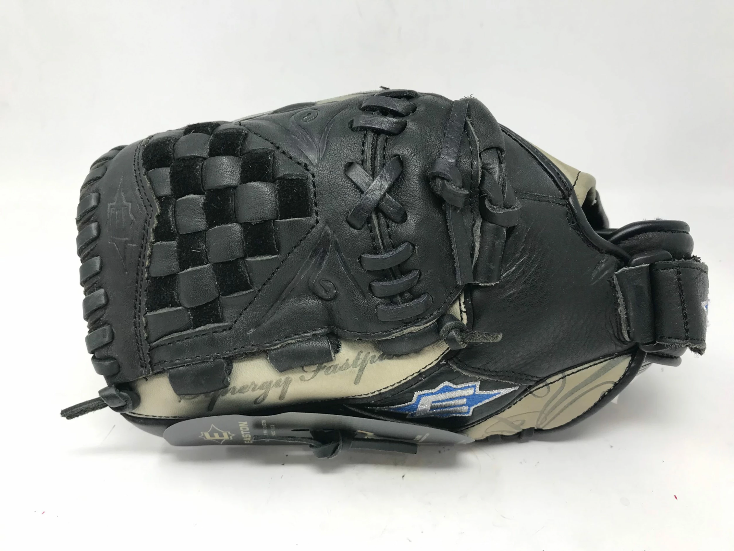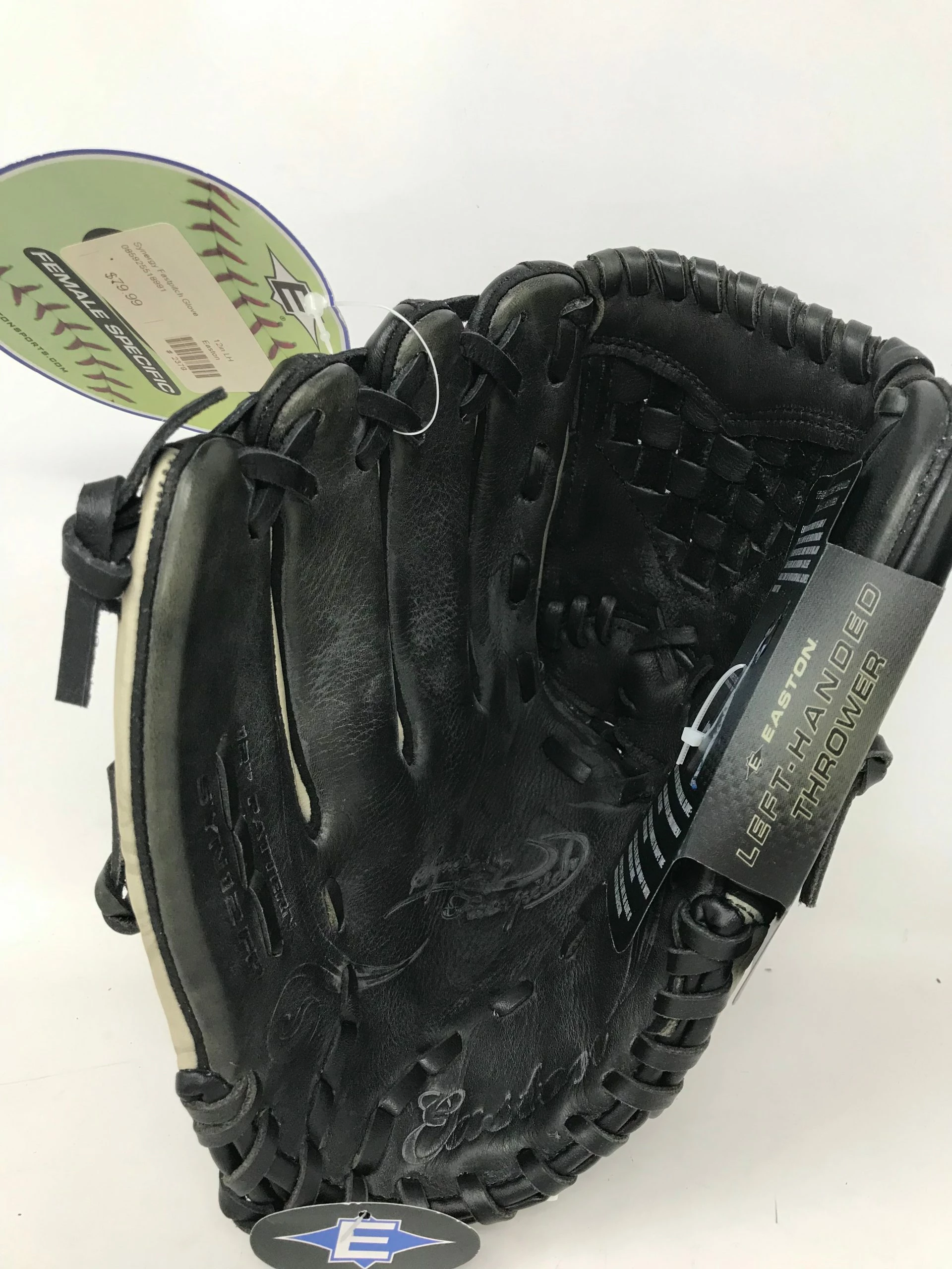 This is a New Easton Synergy SYN12FP 12″ RHT Blk/Blu fastpitch softball glove! New with tags and made for Fastpitch softball use, this is a great starter glove! Its never been used and is a great price. It is made for a player who throws with their right hand